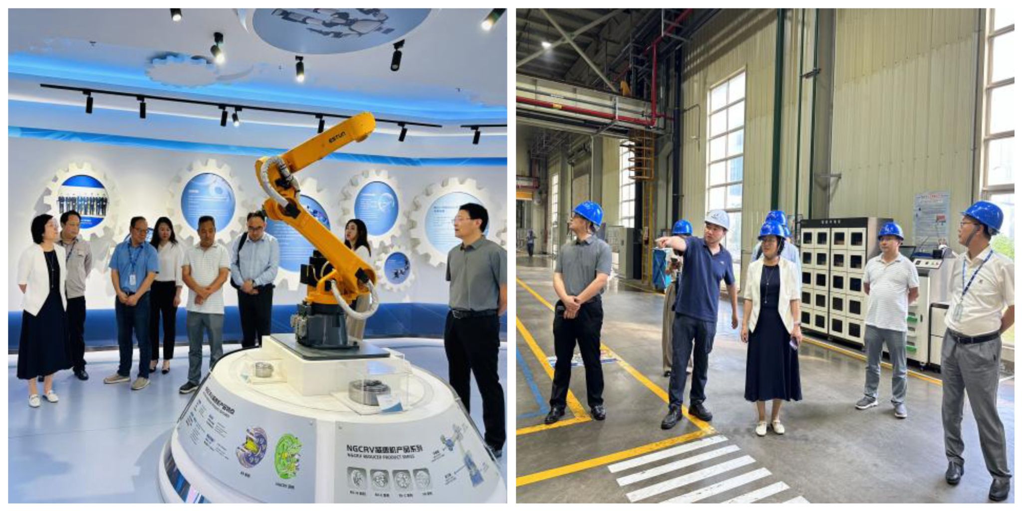 会前,汪群一行实地考察了南高齿传动展馆及智能化生产车间。
