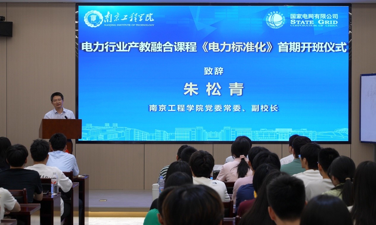 9月4日晚,我校与国家电网公司共建的电力行业产教融合课程《电力标准化》首期正式开班。党委常委、副校长朱松青,国网科技部技术标准处处长赵海翔,国网江苏电力科技部副主任蒋一泉,国网江苏电力科技部成果处处长杨毅受邀参加首期开班式。教务处、电力凯发、沈国荣学院负责人,课程团队教师及首期选课的76名学生共同见证这一时刻。