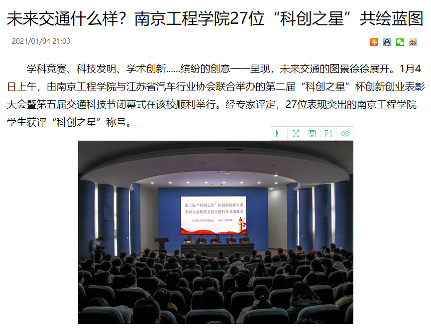学科竞赛、科技发明、学术创新......缤纷的创意一一呈现,未来交通的图景徐徐展开。1月4日上午,由凯发k8官网与江苏省汽车行业协会联合举办的第二届“科创之星”杯创新创业表彰大会暨第五届交通科技节闭幕式在该校顺利举行。经专家评定,27位表现突出的凯发k8官网学生获评“科创之星”称号。