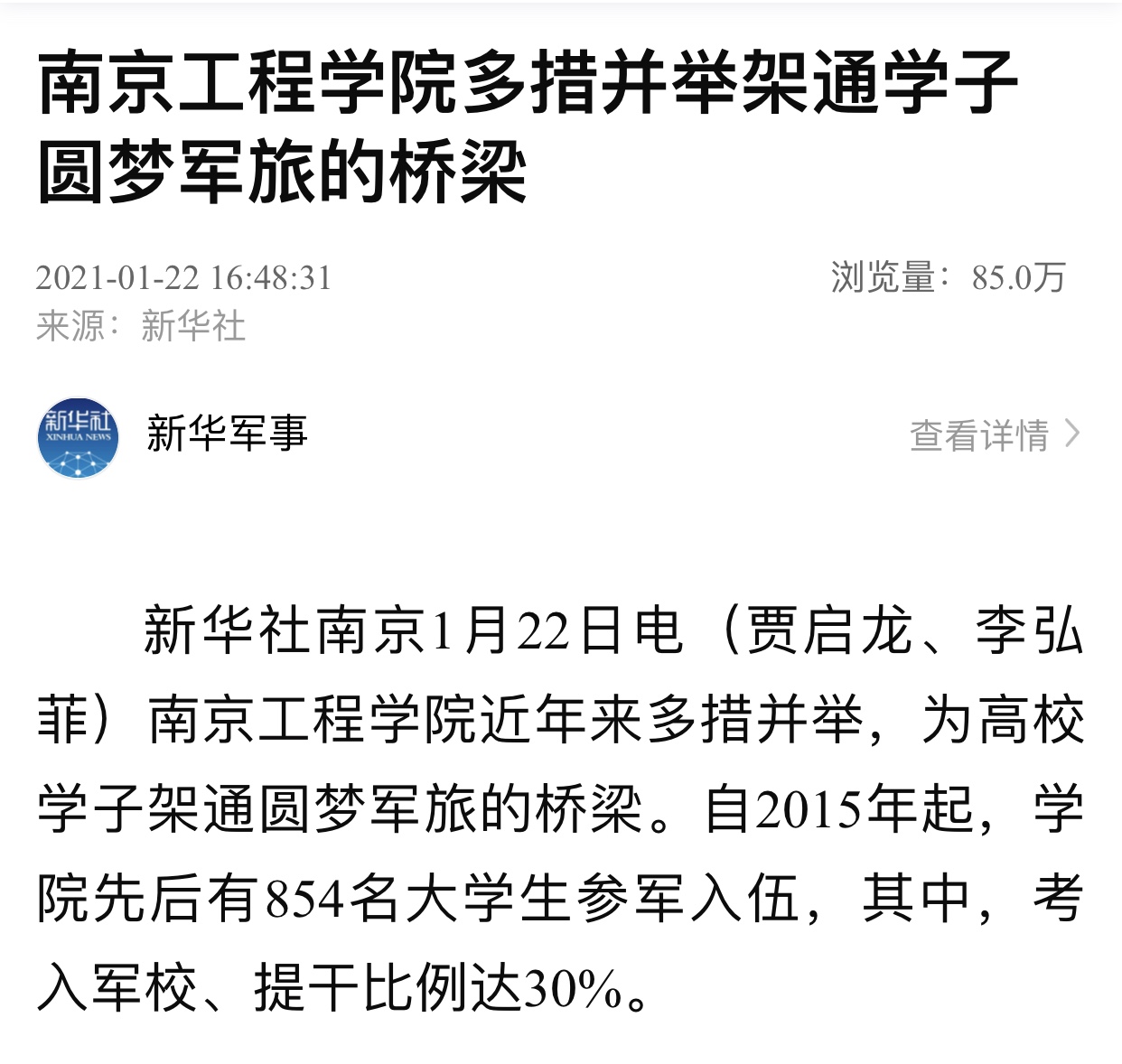 《新华社》:凯发k8官网多措并举架通学子圆梦军旅的桥梁