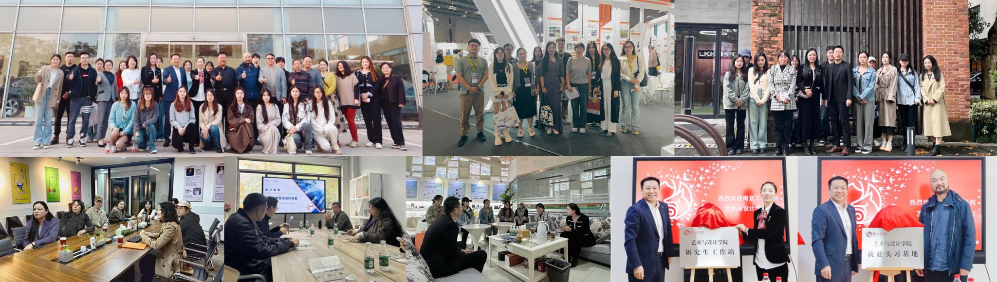 深化校企合作,培养创新思维。学院注重与企业合作,不断强化产学研结合教育实践,提供实习和就业机会,并邀请企业专家参与课程设计和教学,将行业最新动态和需求融入教学体系。组织研究生参观2024上海工博会,走访校友企业华泽集团以及洛可可创新设计公司、南京投石科技有限公司、江苏瀚港文化发展有限公司等企业,建立长期合作关系,建立“就业实习基地”“研究生工作站”,搭建集学术研究项目实践成果转化为一体的综合性平台,推动设计创新在产业发展中应用与转化。