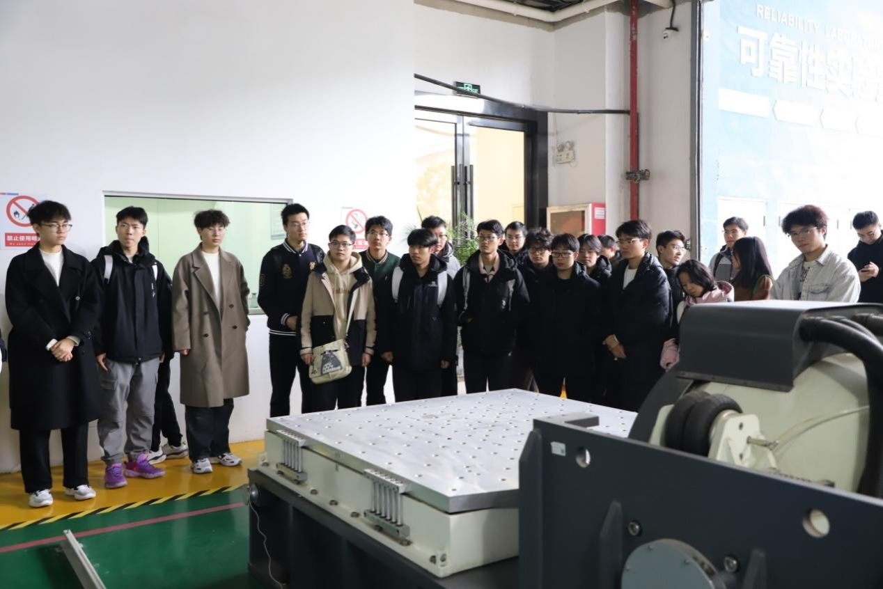 在可靠性实验室,先进设备和严谨流程吸引了师生们的目光。工作人员讲解产品可靠性测试的重要性及流程,师生亲自操作专业仪器,体验无弦吉他等科技应用,深化了对智能科技驱动产业变革的认知。